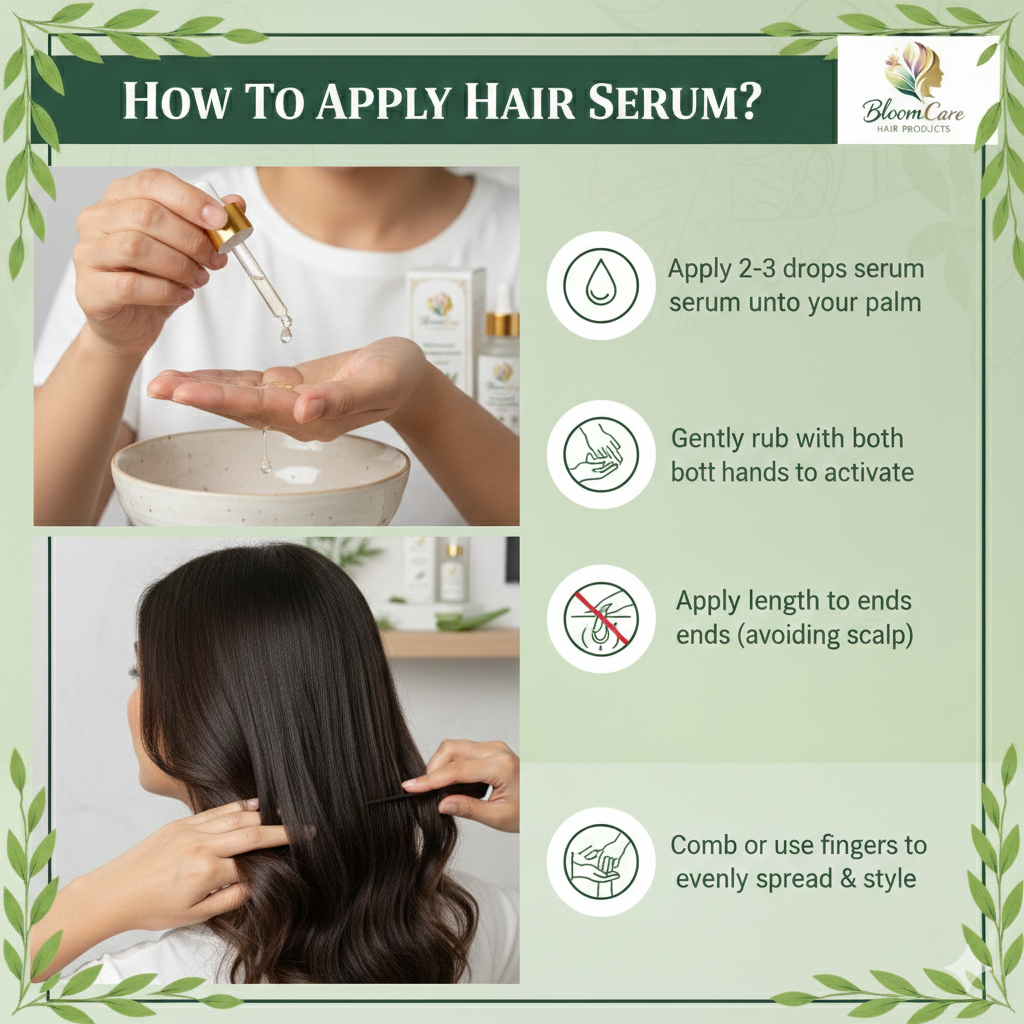 With your fingertips — never your nails — massage the serum into the scalp using slow, deliberate circular motions for 2–3 minutes.Why this matters: